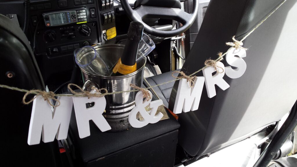 It was then off for the newly weds in Our Land Rover BM2, replete with a bucket of champagne in the back, to canapes and the commencement of wedding festivities at Hilltop Farm, Ilton.